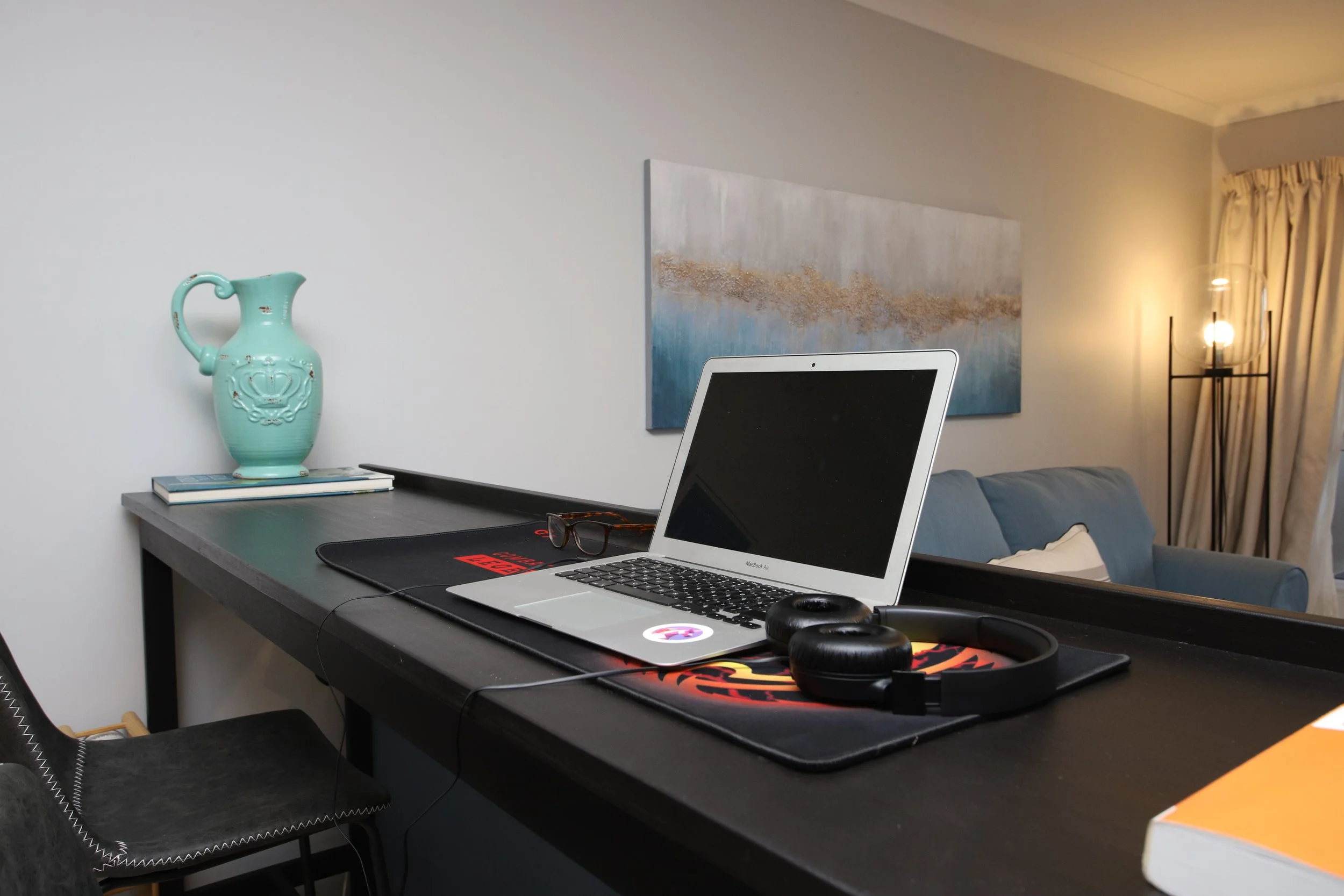 Workstation 1 is located in the main bedroom, with a styling glass desk, large LCD curved monitor, plush leather chair, easy access to a plug point and an unobstructed view of the ocean to your right. The station offers privacy, with a view.